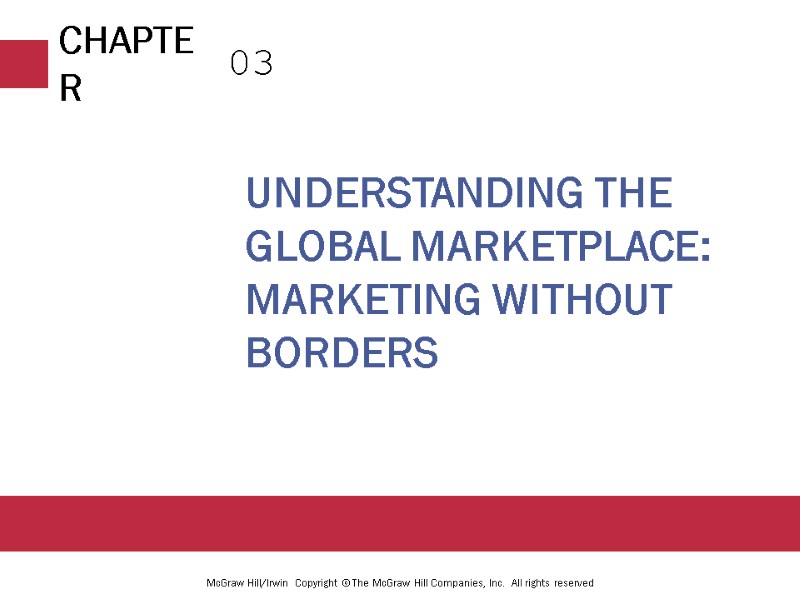 Understanding the Global Marketplace: Marketing without Borders 03 McGraw Hill/Irwin Copyright © The McGraw Hill Companies, Inc. All rights reserved