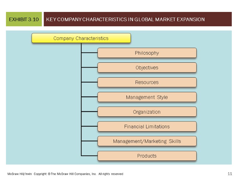 Key Company characteristics in Global Market Expansion EXHIBIT 3.10 McGraw Hill/Irwin Copyright © The McGraw Hill Companies, Inc. All rights reserved 11