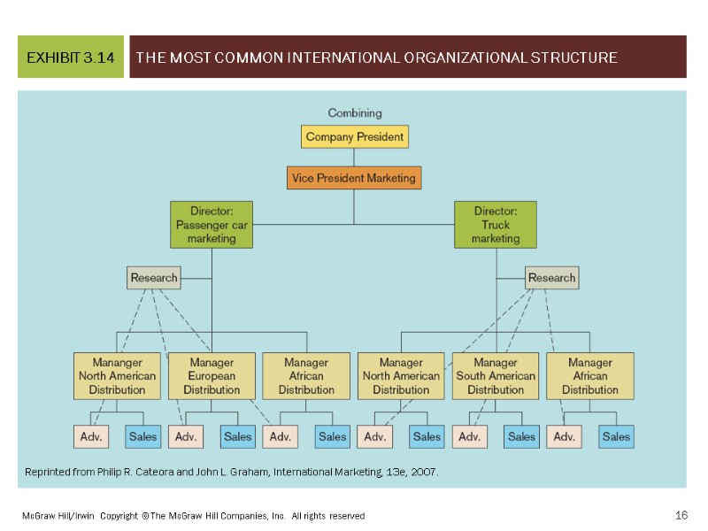 The Most Common International Organizational Structure EXHIBIT 3.14 McGraw Hill/Irwin Copyright © The McGraw Hill Companies, Inc. All rights reserved 16 Reprinted from Philip R. Cateora and John L. Graham, International Marketing, 13e, 2007.