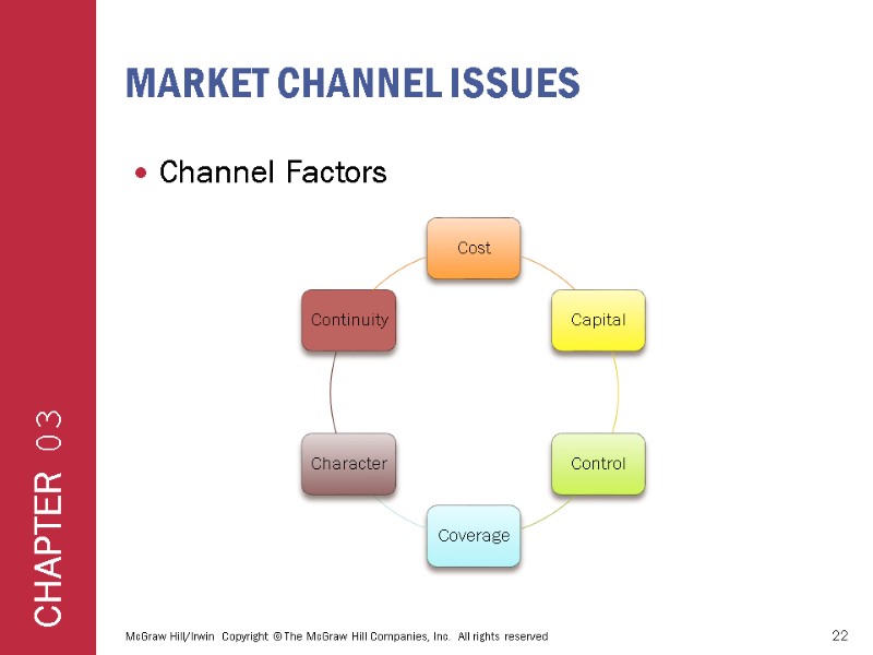 Market Channel Issues Channel Factors McGraw Hill/Irwin Copyright © The McGraw Hill Companies, Inc. All rights reserved 22