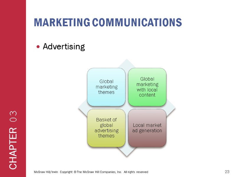 Marketing Communications Advertising McGraw Hill/Irwin Copyright © The McGraw Hill Companies, Inc. All rights reserved 23