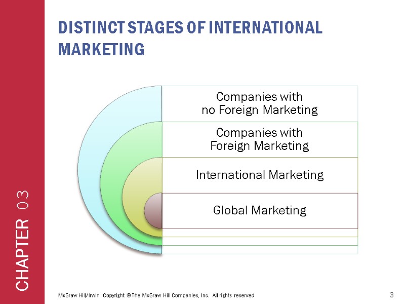 distinct stages of international marketing McGraw Hill/Irwin Copyright © The McGraw Hill Companies, Inc. All rights reserved 3