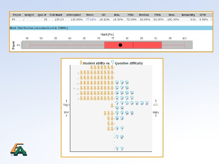Assessment Quality-Assurance Platform l l Based on Rasch Model Item-level and paper-level analysis to ensure quality: l l Item difficulties Discrimination power Item reliability Paper reliability (internal consistency)