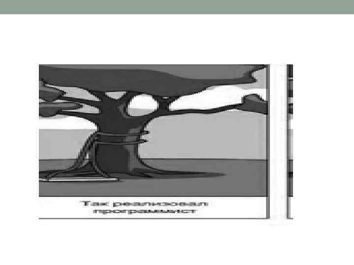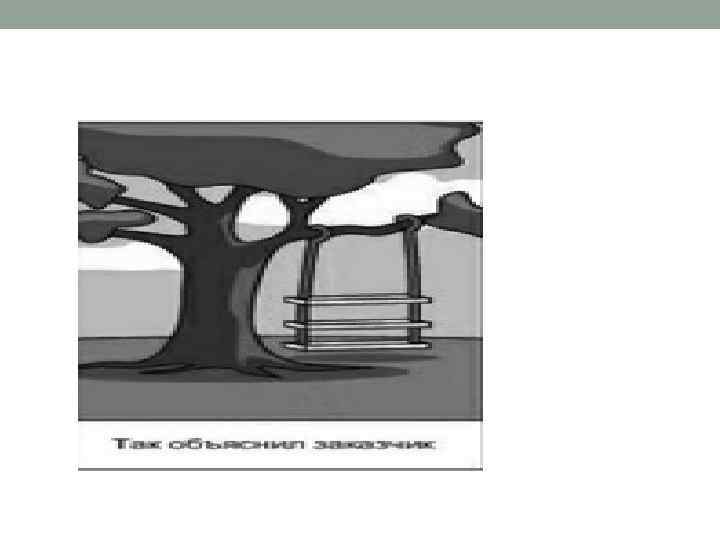 • Из приведенного примера видна основная проблема программной инженерии вызванной отсутствием четкой спецификации создаваемого продукта. • Разрешить эту проблему можно только наличием единого, унифицированного средства создания спецификаций, простого и понятного для всех заинтересованных лиц