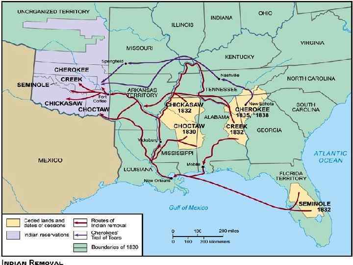 Indian Removal • By 1833, Native Americans were told to assimilate into U. S. society. – Native Americans adopt white society and culture. • Discovery of gold in Cherokee lands in Georgia – Supreme Court said Indians should not be removed – Jackson ignored ruling, passed Indian Removal Act