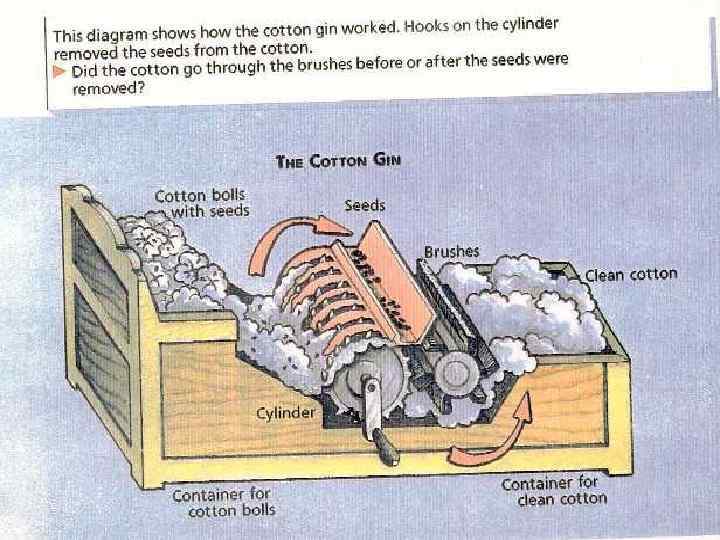 Old Southwest Territory • Alabama, Miss. , Tenn. , LA. , Arkansas. – Commercial farming of cotton in territory – Alabama & Miss. produced 50% of exported cotton in U. S. by 1820. • Eli Whitney- inventor of the cotton gin. – Led to expansion of plantations – Increase demand for slave labor
