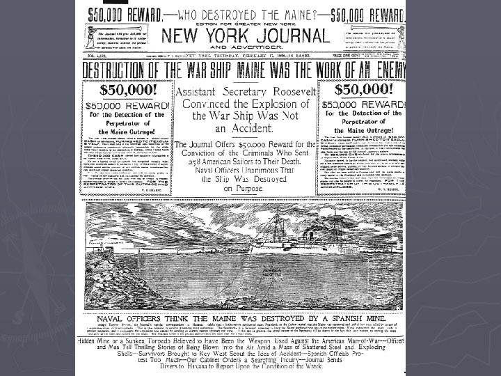 The de Lome Letter & the U. S. S. Maine ► Enrique Dupuy de Lome § Spanish minister to the United States ► The U. S. S. Maine § Sent to Cuba to evacuate Americans § February 15 th, 1898 explodes in Havana Harbor, 260+ KIA § Spanish and US investigations took place