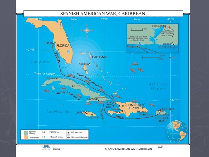 The War in the Caribbean ► Blockade of Cuba § Demonstrated strength of new US Navy ► Army was very small § Relied on volunteers § Unsuited for tropical climate ► 17, 000 land in Cuba (June) § Four African American regiments § Calvary units (Rough Riders)
