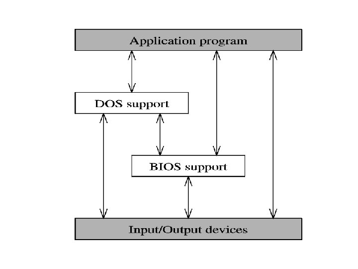 BIOS INTERRUPTS ( C) FUNCTION CALL 0 E: WRITE CHARACTER ON CRT SCREEN AND ADVANCE CURSOR INPUT PARAMETER: AH = 0 EH AL = ASCII CODE OF THE CHARACTER BH = PAGE(TEXT MODE) BL = COLOR(GRAPHICS) FUNCTION: DISPLAY CHARACTER AVAILABLE IN AL ON SCREEN INT 11 H: DETERMINE THE TYPE OF EQUIPMENT INSTALLED. REGISTER AX SHOULD CONTAIN FFFFH AND INSTRUCTION INT 11 H TO BE EXECUTED. ON RETURN, REGISTER AX WILL INDICATE THE EQUIPMENTS ATTACHED TO COMPUTER INT 14 H: CONTROL THE SERIAL COMMUNICATION PORT ATTACHED TO THE COMPUETR. AH SHOULD CONTAIN THE FUNCTION CALL (a) FUNCTION CALL 00: INITIALIZE THE COM PORT (b) FUNCTION CALL 01: SEND A CHARACTER (c) FUNCTION CALL 02: RECEIVE A CHARACTER INT 16 H: KEYBOARD INTERRUPT AH SHOULD CONTAIN THE FUNCTION CALL (a) FUNCTION CALL 00: READ KEYBOARD CHARACTER, IT WILL RETURN ASCII CODE OF THE CHARACTER (b) FUNCTION CALL 01: GET KEY BOARD STATUS