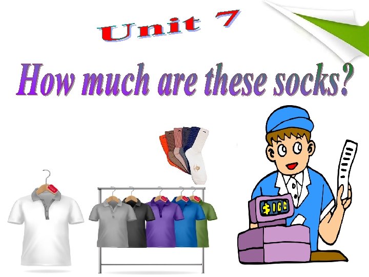 三、单项选择 1. —The T-shirt is only ten dollars? A —I’ll ____ it. A. take B. sale C. sell 2. — Can I help you? —_____. C A. I’m sorry. B. Thank you. C. Yes, please. I want a skirt. 3. We have sweater _____ green, red and yellow C ______ only 18 dollars. A. at, to B. on, in C. in, for 4. How much ______ those socks? B A. is B. are C. do
