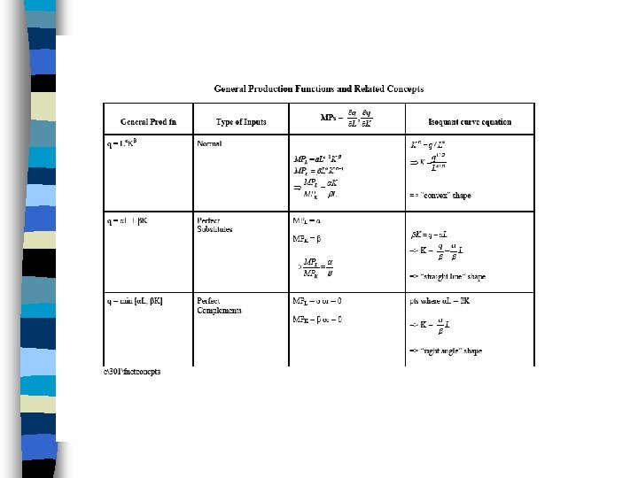 Assume a production process: n. Q n. K n. L n. R n. W = = = 10 K 1/2 L 1/2 units of output units of capital units of labor rental rate for K = $40 wage rate for L = $10