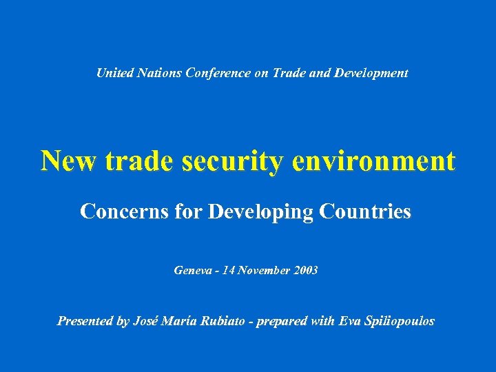 United Nations Conference on Trade and Development New trade security environment Concerns for Developing Countries Geneva - 14 November 2003 Presented by José María Rubiato - prepared with Eva Spiliopoulos