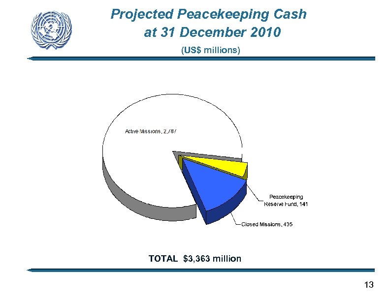 Projected Peacekeeping Cash at 31 December 2010 (US$ millions) TOTAL $3, 363 million 13