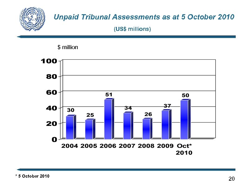 Unpaid Tribunal Assessments as at 5 October 2010 (US$ millions) $ million * 5 October 2010 20