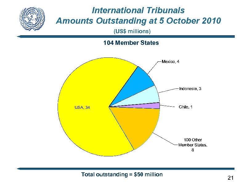 International Tribunals Amounts Outstanding at 5 October 2010 (US$ millions) 104 Member States Total outstanding = $50 million 21