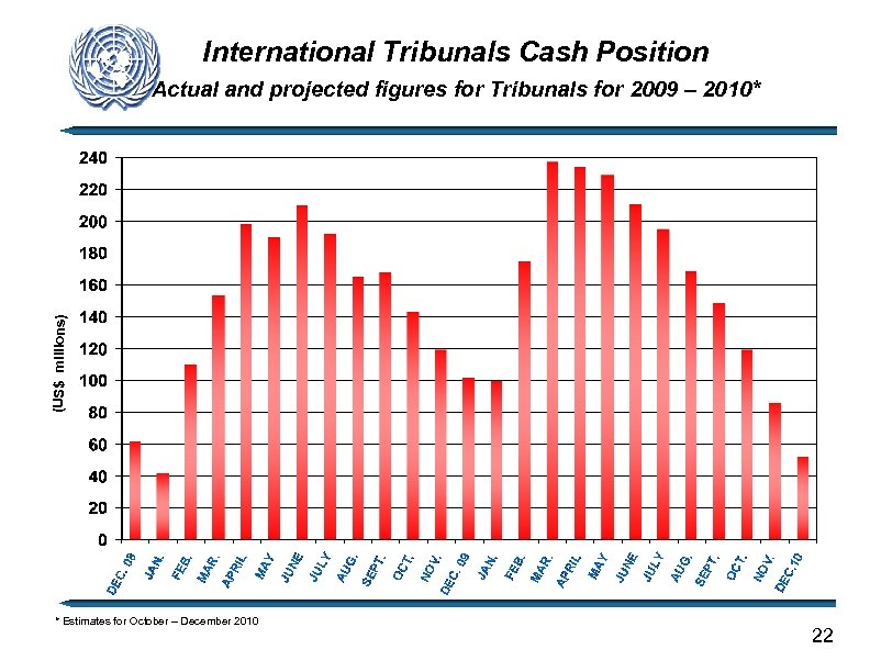 International Tribunals Cash Position (US$ millions) Actual and projected figures for Tribunals for 2009 – 2010* * Estimates for October – December 2010 22