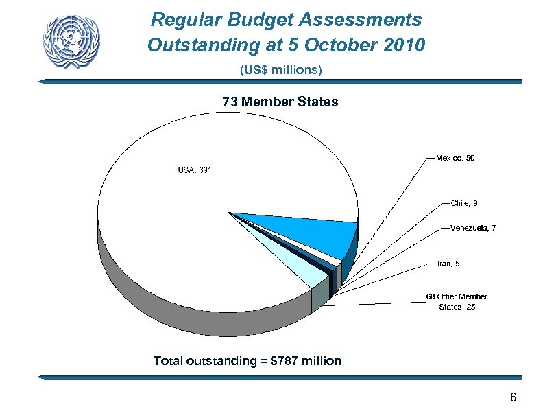 Regular Budget Assessments Outstanding at 5 October 2010 (US$ millions) 73 Member States Total outstanding = $787 million 6