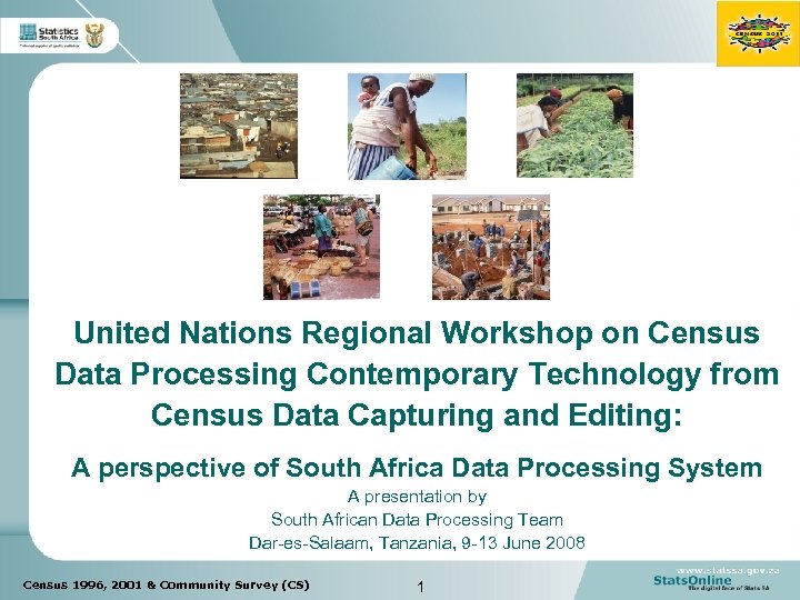 United Nations Regional Workshop on Census Data Processing Contemporary Technology from Census Data Capturing and Editing: A perspective of South Africa Data Processing System A presentation by South African Data Processing Team Dar-es-Salaam, Tanzania, 9 -13 June 2008 Census 1996, 2001 & Community Survey (CS) 1