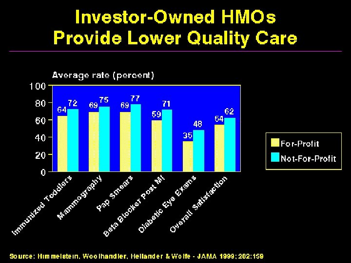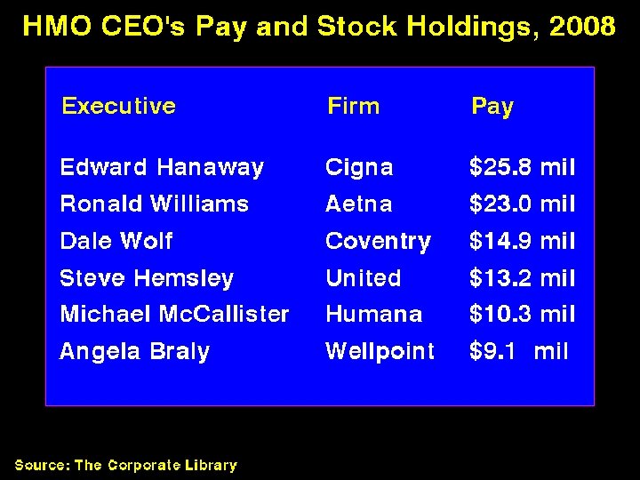 Where is the money going? Number of Administrators Growth since 1970 Number of RNs 2500% 2000% 1500% 1000% 500% 0% 1970 1975 1980 1985 1990 1995 Source: Bureau of Labor Statistics & Himmelstein/Woolhandler/Lewontin Analysis of CPS data 2001