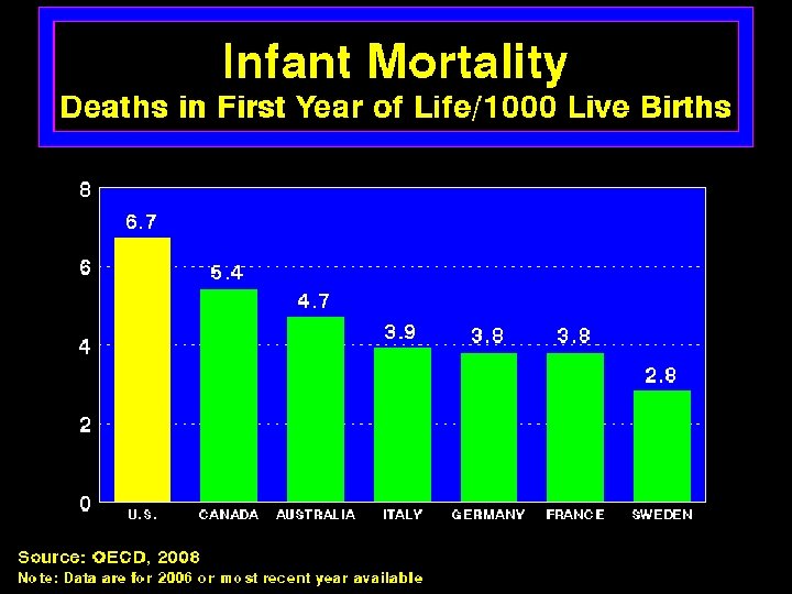 Quality of Care Slightly Better in Canada Than U. S. A Meta-Analysis of Patients Treated for Same Illnesses (U. S. Studies Included Mostly Insured Patients) Source: Guyatt et al, Open Medicine, April 19, 2007