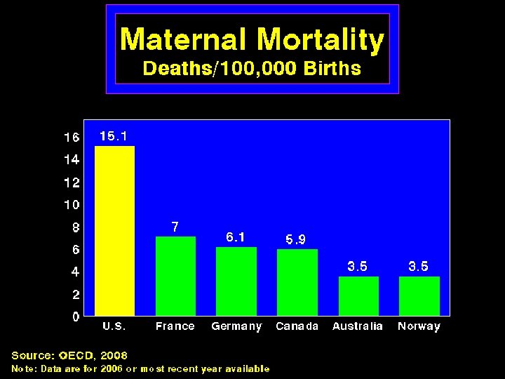 Mortality Amenable to Health Care: U. S. Failing to Keep Pace with Other Countries Deaths per 100, 000 population* * Countries’ age-standardized death rates before age 75; including ischemic heart disease, diabetes, stroke, and bacterial infections. Data: E. Nolte and C. M. Mc. Kee, London School of Hygiene and Tropical Medicine analysis of World Health Organization mortality files (Nolte and Mc. Kee, Health Affairs 2008). Source: Commonwealth Fund National Scorecard on U. S. Health System Performance, 2008.