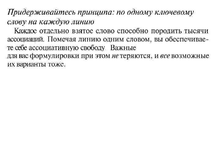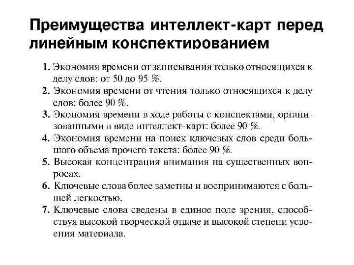 ПРЕИМУЩЕСТВА • АССОЦИАЦИИ И ВЫРАЗИТЕЛЬНОСТЬ МЫСЛЕННОГО ОБРАЗА • ЛИНЕЙНОСТЬ ПОРОЖДАЕТ ЛОЖНОЕ ОЩУЩЕНИЕ ЗАВЕРШЕННОСТИ • КРАТКОСТЬ, ЕМКОСТЬ ИЗЛОЖЕНИЯ И СОБСТВЕННОЕ АКТИВНОЕ ОСМЫСЛЕНИЕ МАТЕРИАЛА ЯВЛЯЮТСЯ ВАЖНЕЙШИМИ ФАКТОРАМИ УСПЕШНОГО КОНСПЕКТИРОВАНИЯ