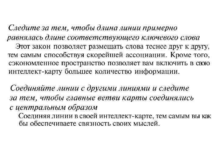 Важнейший аспект радиантного мышления – и, соответственно, интеллект- карт: ИНТЕЛЛЕКТ-КАРТА базируется на логике ассоциаций, а не на логике хронологии. Интеллект- карта протягивает свои ветви в любом направлении и рассматривает любую мысль под любым углом зрения.