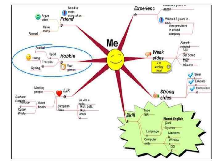Ментальные карты не только можно, но и нужно рисовать в как можно более свободном стиле. По возможности нужно иллюстрировать их наглядными символами, тематическими картинками, использовать множество цветов. Плюс допускается применение дополнительных элементов — обводка нескольких веток контурами в виде «облаков» , стрелочки, пунктиры и т. п. Все это повышает наглядность и запоминаемость карт, да и сам процесс создания становится более эффективным и интересным.