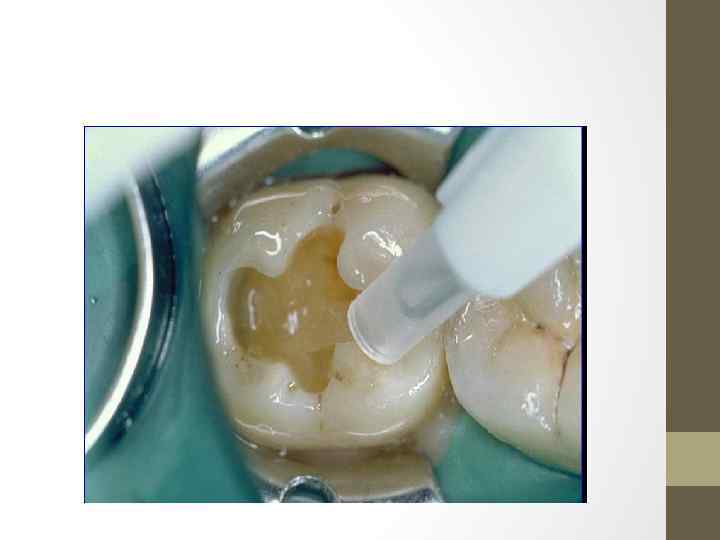 Методика нанесения самопротравливающего адгезива. • Адгезив наносится на дентин, эмаль 2– 3 -мя порциями и втирается в стенки полости аппликатором легкими «массирующими» движениями в течение 15 -30 секунд. Затем адгезив тщательно высушивается слабой струей воздуха (до получения тонкой блестящей пленки, неподвижной при воздействии струи воздуха) и полимеризуется светом активирующей лампы. После этого проводится пломбирование композитом по общепринятой методике.