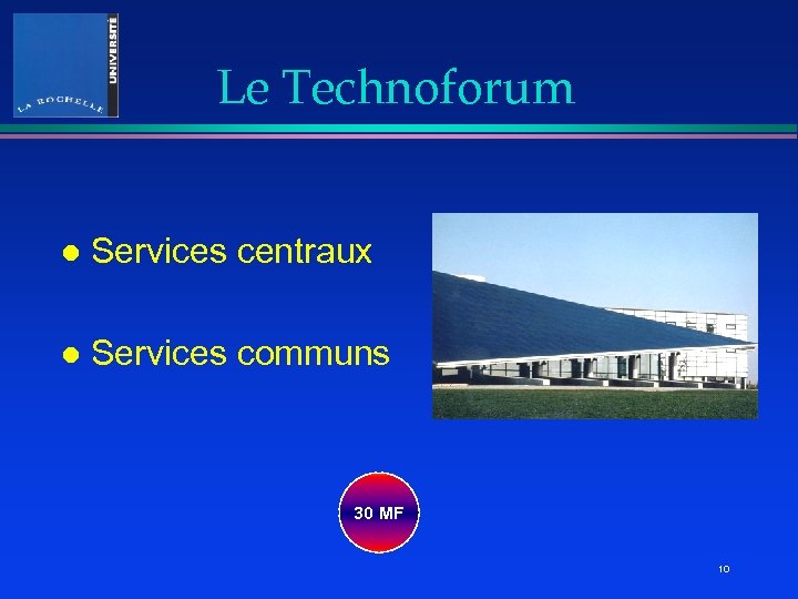 Le Technoforum l Services centraux l Services communs 30 MF 10