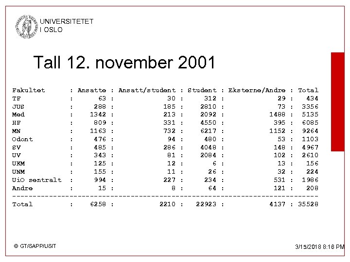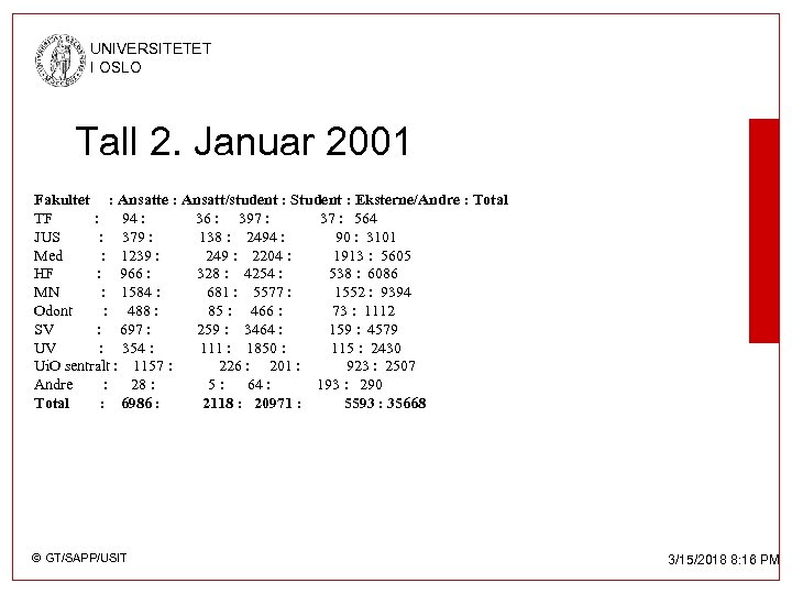 UNIVERSITETET I OSLO © GT/SAPP/USIT 3/15/2018 8: 16 PM