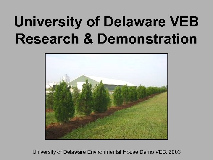 University of Delaware VEB Research & Demonstration University of Delaware Environmental House Demo VEB, 2003