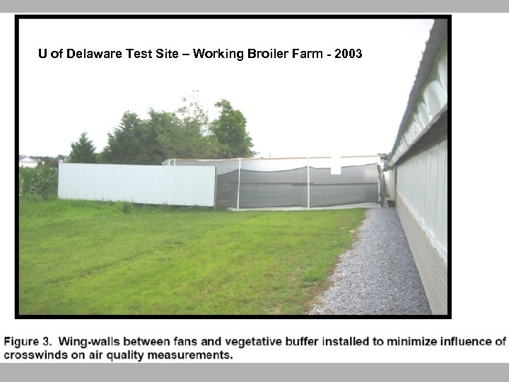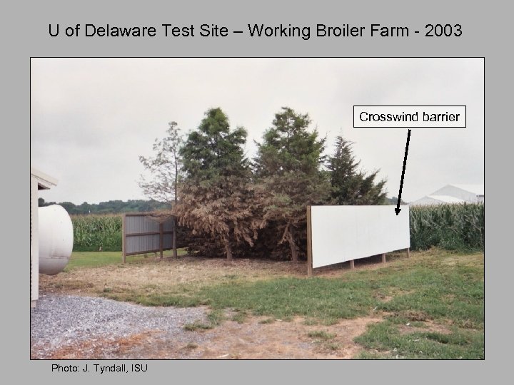 U of Delaware Test Site – Working Broiler Farm - 2003 Crosswind barrier Photo: J. Tyndall, ISU