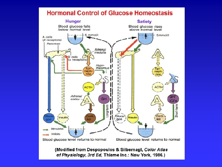 Hormones Control the Islets of Langerhans Glucose Balance http: //medlib. med. utah. edu/Web. Path/jpeg 4/ENDO 039. jpg Pancreas Insulin acts on body cells to allow them to take in circulating glucose. Insulin levels rise when glucose rises. Glucagon Insulin Adrenaline, cortisol, & growth hormone also make blood glucose Glucagon acts on liver to stimulate glucose production rise. But insulin-like& release, & on fat to cause growth factor I acts fat breakdown. Glucagon like insulin. rises when glucose falls.