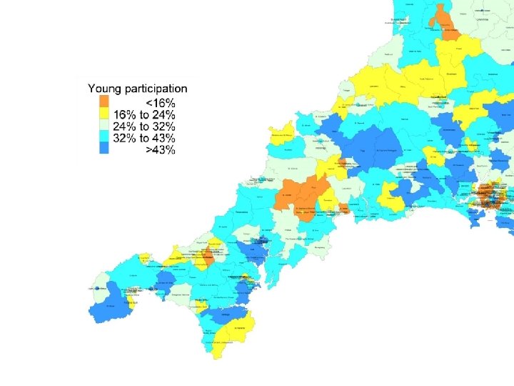 CORNWALL 2001 • No broadband coverage • < 2, 500 higher education places • Young people leaving the county • Foot & Mouth disease hits agriculture • GDP 66. 7% of EU average