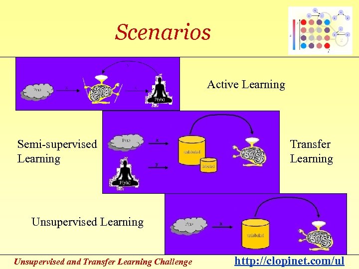 Scenarios Active Learning Semi-supervised Learning Transfer Learning Unsupervised Learning 6 Unsupervised and Transfer Learning Challenge http: //clopinet. com/ul