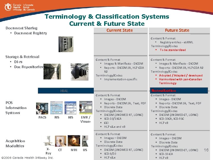 Issues To Be Addressed • (2) Synchronization of shared radiology studies § Radiology study split § Radiology study attribute changes § Deletion of a study component (e. g. radiology image) • Standardized representation of DI study in the XDS Affinity Domain § A single manifest § Multiple manifests • • Standardized use of XDS Affinity Domain attributes and metadata Division of responsibilities between PACS and DI-r Data synchronization between local PACS systems and DI-r Linking of documents from multiple repositories and support for consultation workflows including creation of new objects 2008 Canada Health Infoway Inc. 15