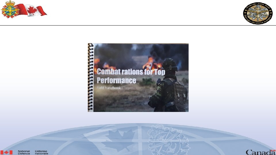Nutritional Needs • 2, 300 to 5, 000+ calories per day depending on environment and activity level. • NSCM – provides up to approx. 3400 kcal/ day. Requirement to Meet the additional calories to support overall energy needs of all CAF personnel