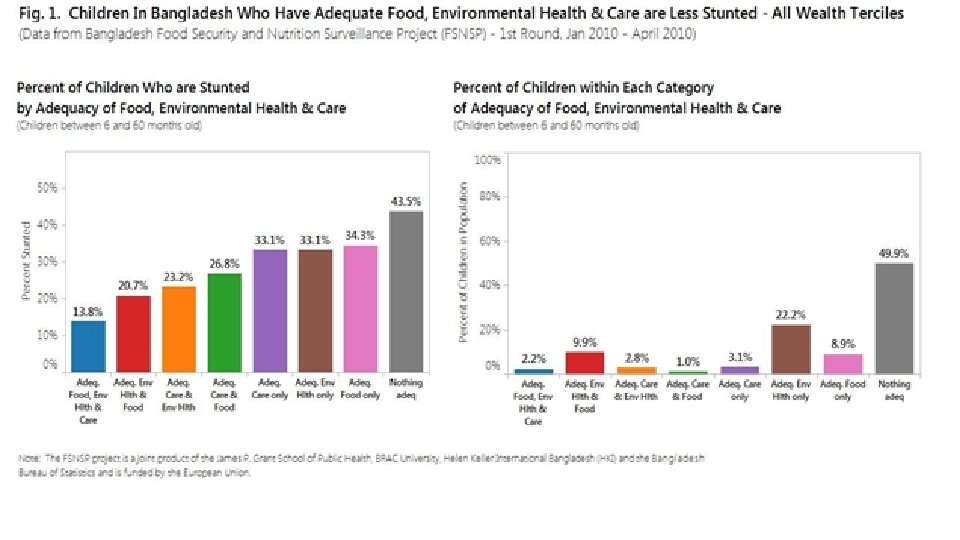 Responding to root causes of malnutrition disability Malnutrition Coordination Low nutrient supported by intake SSSJ Inadequate food security MAF/SSSJ IFAD Inadequate mother and child care Mo. H, WFP, LWU, SSSJ, KOICA, PInt, ADRA death Diseases WASH and health Mo. H, LWU, ADRA, Plan Int. Individual level Low education Mo. ES, MOCI, LWU, SSSJ, WFP, ADRA, Plan Int Household / community level