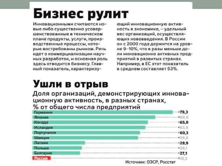 Ситуация в России в сфере покупки интеллектуального ресурса • Наличие большого интеллектуального потенциала. 20 лет назад мы во многом копировали опыт других стран, например США. А сейчас мы обмениваемся своим опытом; • Государственные формы принудительного внедрения научных знаний (через НИИ) практически исчезли; • Культура привлечение независимых консультантов ещё не успела получить широкого распространения; • Любовь российских управленцев к лечению проблем "народными средствами" и попыткам "экономить" на их решении; • Большинство российских руководителей не имеют информации о необходимых им консультационных услугах; • Они не имеют навыков правильного использования Консультанты в России исследуют трудности, а не возможности, как на Западе. результатов работы консультантов; • Руководители не могут сопоставить затраты и результаты работы консультантов.