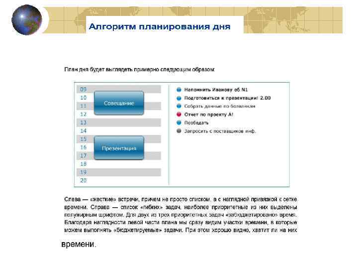 Планирование. Инструменты планирования: 1. Кайросовое(контекстное)планирован ие. (Ежедневник; Стикеры; Стратегические кортонки) 2. Жесткое и гибкое планирование. (Ежедневник; Недельный планик). 3. Outlook.
