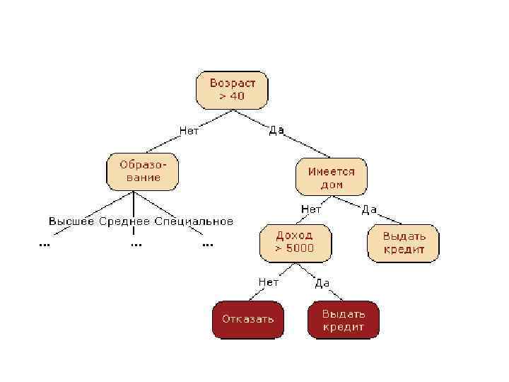 Дерево решений Это графическая схема, отражающая структуру многошагового процесса. Ветви дерева отображают различные события, которые могут иметь место, а узлы – точки, в которых возникает необходимость выбора.