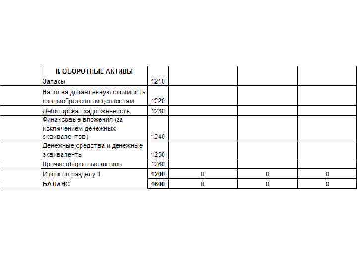 Запасы НДС по приобретенным ценностям это предметы труда, которые еще не вступили в производственный процесс, но находятся на предприятии в определенном размере, обеспечивающем непрерывность производственного процесса, в виде складских запасов. К ним относятся сырье, вспомогательные материалы, покупные полуфабрикаты, топливо, тара, запасные части для ремонта оборудования, а также хозяйственный инвентарь; отражается остаток налога на добавленную стоимость по приобретенным материальнопроизводственным запасам, нематериальным активам, капитальным вложениям, работам и услугам, который не принят к вычету. Остаток по счету 19 может возникнуть в таких случаях (все они прописаны в статьях 171 и 172 НК РФ): 1. при экспорте продукции (задержка с принятием НДС к вычету связана с тем, что необходимо пройти процедуру подтверждения факта экспорта); 2. если приобретенные ценности используются компанией с длительным циклом производства (НДС к вычету принимается лишь после отгрузки готовой продукции покупателю); 3. если поставщик не предоставил счет-фактуру либо счет-фактура оформлен с существенными нарушениями. Дебиторская задолженность Финансовые вложения (за исключением денежных эквивалентов) Денежные средства и денежные эквиваленты Прочие оборотные активы Из финансовых вложений из основных средств, только сроком менее 1 года отражается информация об имеющихся у организации денежных средствах в российской и иностранных валютах, а также о денежных эквивалентах. К денежным эквивалентам могут быть отнесены, например, открытые в кредитных организациях депозиты до востребования.