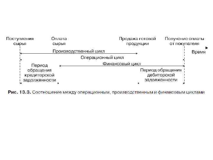 Операционный цикл – это период полного оборота всей суммы оборотных активов, в процессе которого происходит смена отдельных видов. Он включает период времени от момента расходования организацией денежных средств на приобретение входящих запасов материального оборотного капитала до поступления денег от дебиторов за реализованную им продукцию.