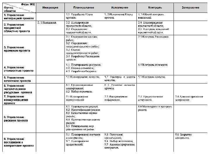Процессы планирования Процессы инициировани я Процессы исполнения Процессы контроля Процессы завершения