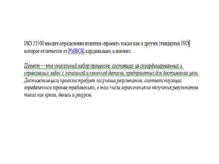 Существующие трактовки понятий «Проект» Толковый словарь Вебстера: “Проект (англ. – Project) – это что-либо, что задумывается или планируется, большое предприятие» . l DIN 69901 (Германия) дает следующее определение понятия «проект» : l «Проект – это предприятие (намерение), которое в значительной степени характеризуется неповторимостью условий в их совокупности, например: l l Задание цели; Временные, финансовые, людские и другие ограничения; Разграничения от других намерений; Специфическая для проекта организация его осуществления» .