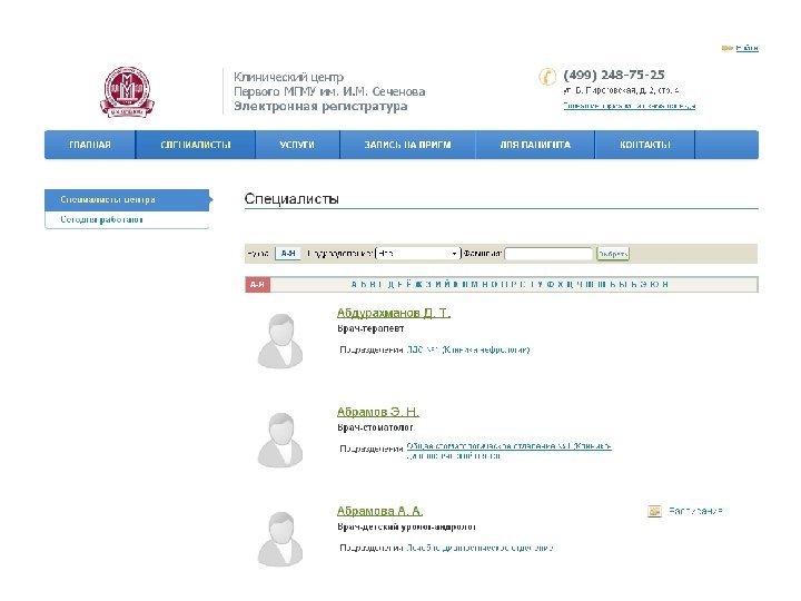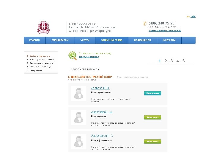Пример внедрения: Клинический центр Первого МГМУ имени И. М. Сеченова. Сайт и запись на прием в 19 клиник центра