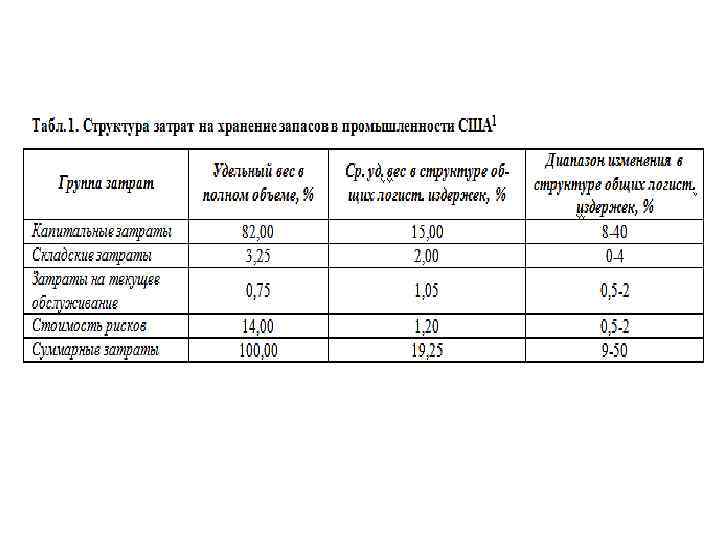 Общие затраты на управление запасами на складе (total costs) состоят: • затраты на пополнение запасов (procurement costs) • затраты на хранение запасов (inventory carrying costs) • издержки непокрытия (out-of-stock costs)