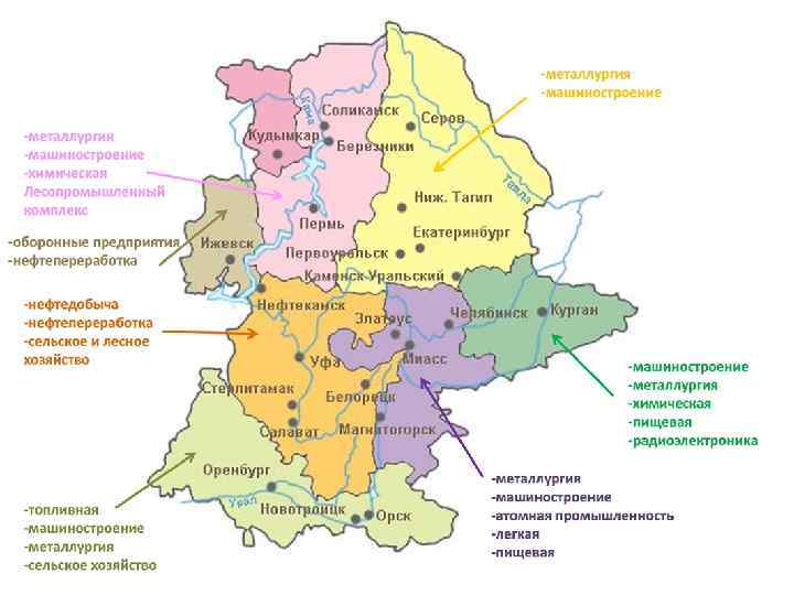 Субъекты Челябинская область Административный центр Челябинск S=(км 2) 88 529 км² Особенности Крупнейшие металлургические комбинаты (Магнитогорск, Челябинск). Атомная промышленность.