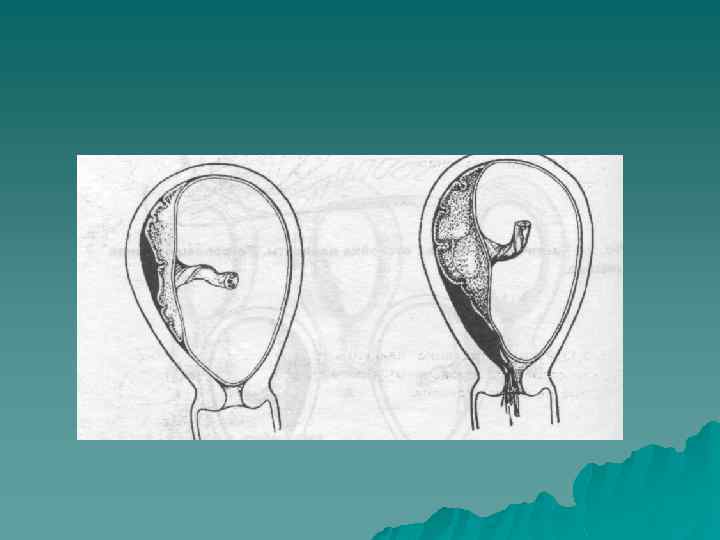 Клиническая картина u u u Внезапное безболезненное кровотечение из половых путей алой кровью среди полного покоя (типичный симптом!). Обычно прекращается самостоятельно и возобновляется вновь. Степень анемизации женщины соответствует величине наружного кровотечения. Болевой синдром отсутствует. Тонус матки не изменен! В 25% случаев кровотечение начинается на фоне схваток. Однако при их прекращении матка мягкая, расслабляется полностью. У 30% пациенток наблюдается косое или поперечное положение плода. В продольном положении головка плода может определяться высоко над входом в таз.